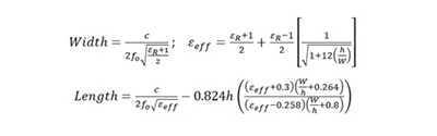 Largeur (W) : W = (c / (2 × f₀)) × √(2 / (εr + 1))