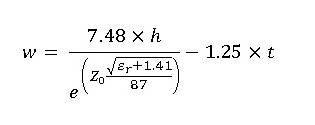 W = (7,48 × H) / exp( Z0 × √(εr + 1,41) / 87 ) – 1,25 × t